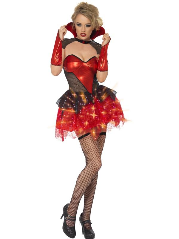 All That Glitters Vamp Gloss Costume, Red, Light Up, Dress, Cape and Glovettes, in Display Bag