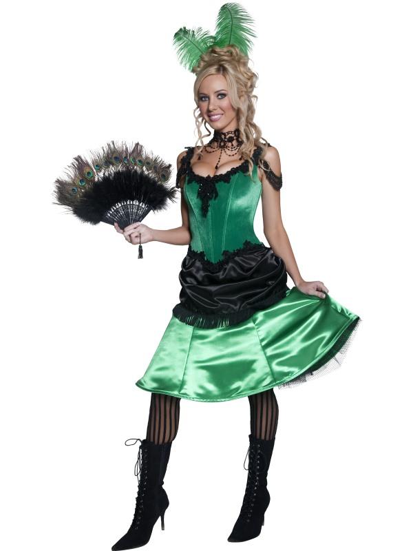 Authentic Western Saloon Girl Costume, Green, with Dress and Hair Clip, in Display Bag