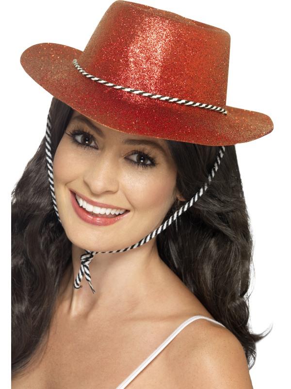 Cowboy Glitter Hat, Red, with Cord, on Display Card