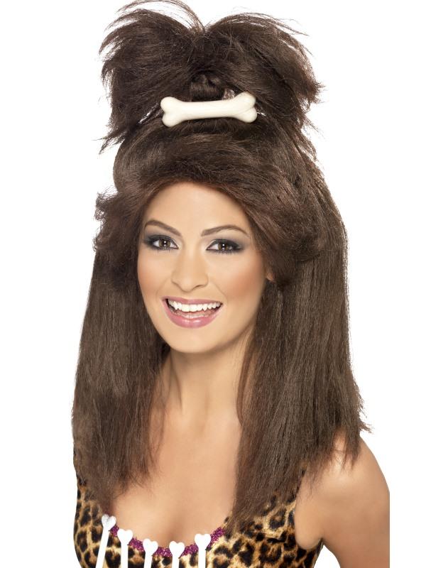 Crazy Cavewoman Wig, Brown, with High Ponytail with Bone, in Display Box