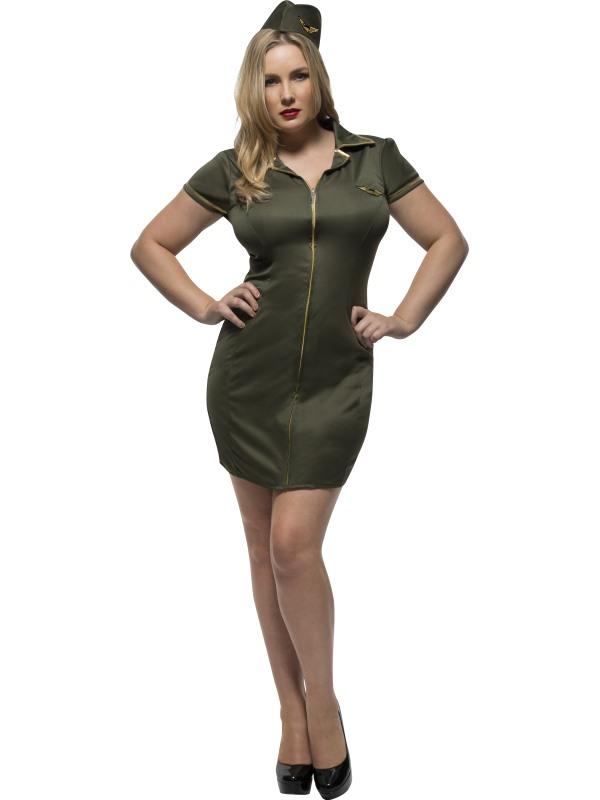 Fever Curves Army Costume, Khaki, with Dress & Hat, in Display Bag