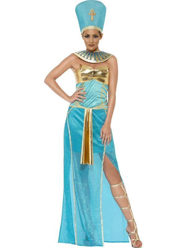 Goddess Nefertiti Costume, Blue, with Dress, Headpiece & Collar, in Display Bag