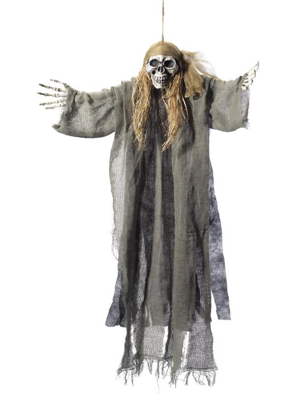 Hanging Pirate Skeleton Decoration, Green, with Muslin Robe, 70x90cm / 28x35in, with Tag Card