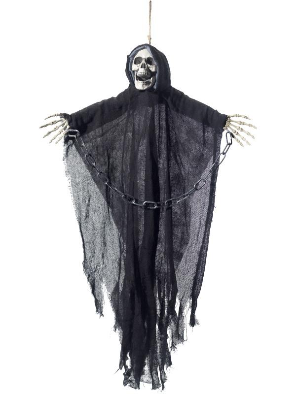 Hanging Reaper Skeleton Decoration, Black, with Cape & Chains, 70x90cm / 28inchx35inch, with Tag Card