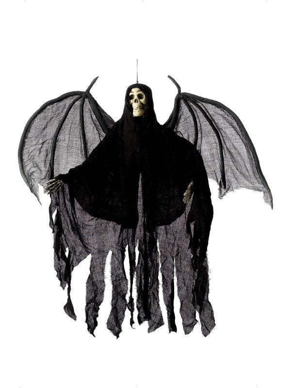 Hanging Skeleton Angel Decoration, Black, with Hooded Robe & Wings, Height 105cm, with Tag Card