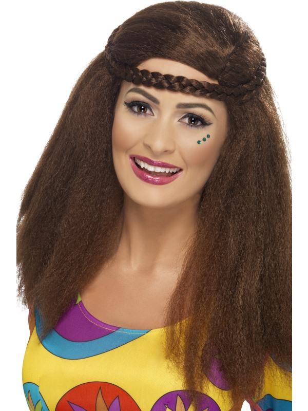 Hippy Chick Long Afro, Brown, with Plaited Headband, in Display Box