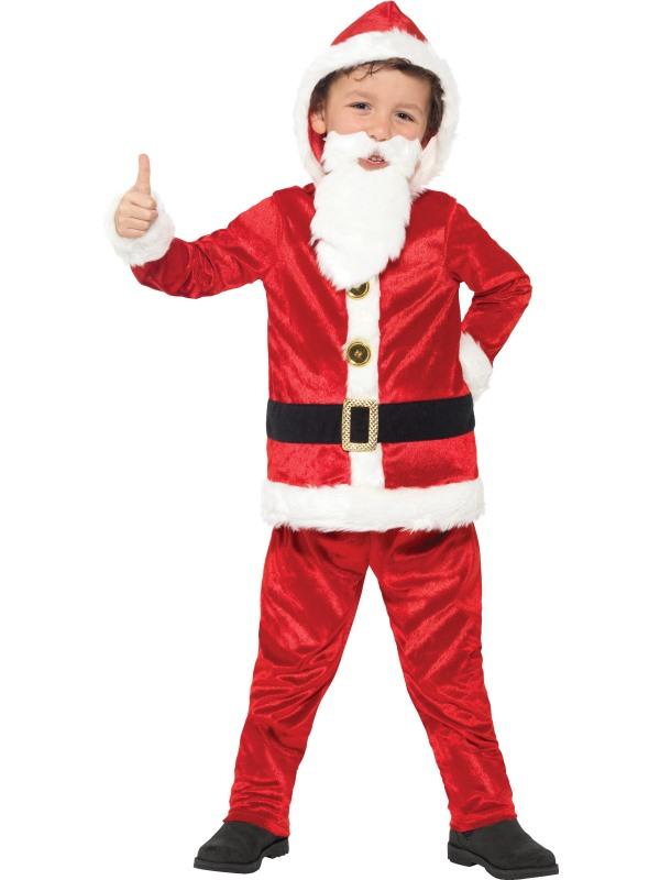Jolly Santa Costume, Red & White, Jacket, Belly, Sound Chip, Trousers, Hat & Beard, in Display Bag