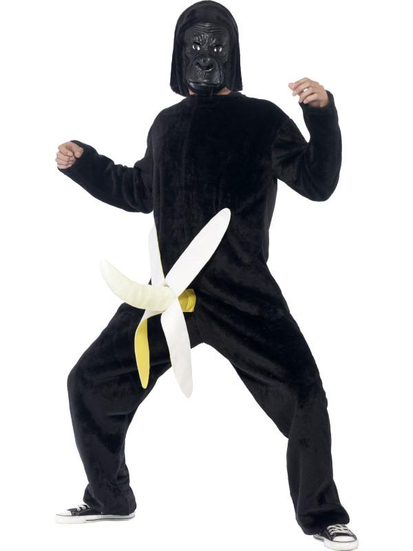 King Dong Costume, Black, with Bodysuit with Attached Banana and Latex Mask, in Display Bag