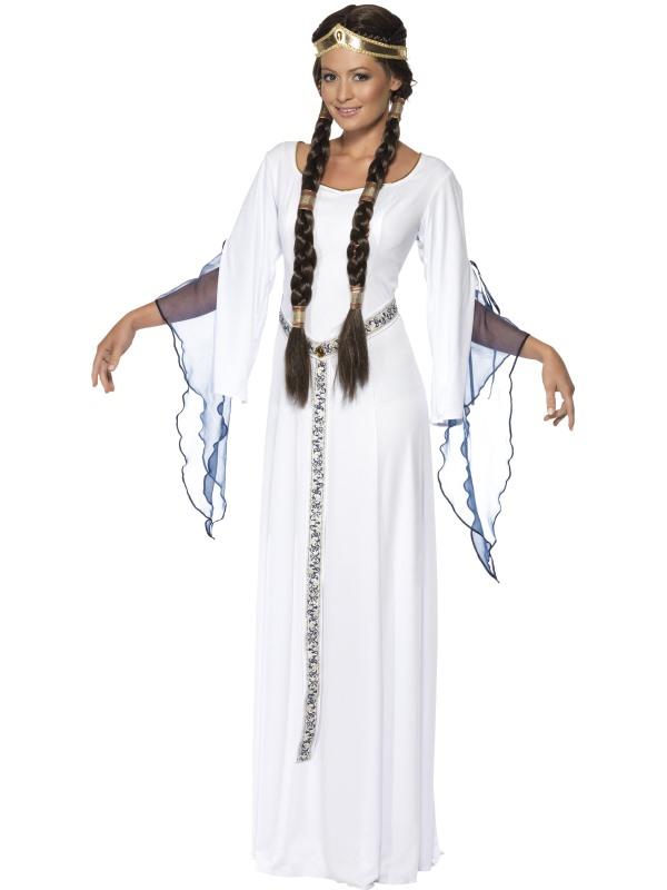 Medieval Maid Costume, White, with Dress, Belt & Headpiece, in Display Bag