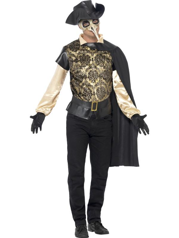Plague Doctor Costume, Black, with Top, Cloak, Gloves & Mock Leather Hat, in Display Bag