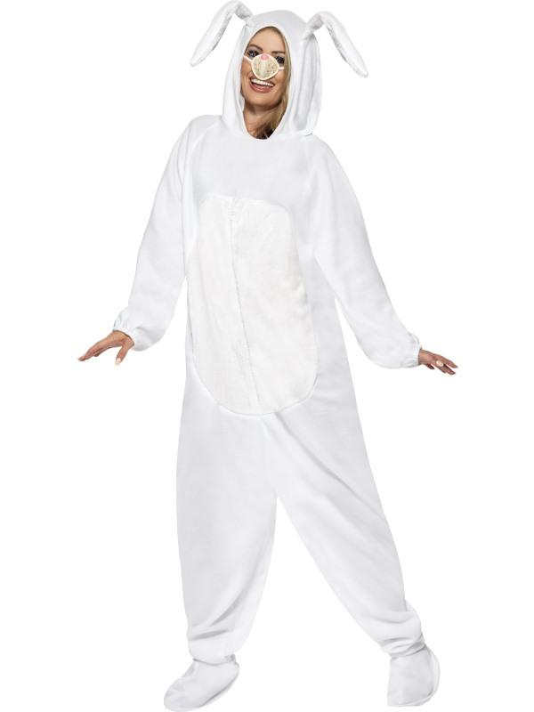 Rabbit Costume, White, All in One with Hood and Nose, in Display Bag