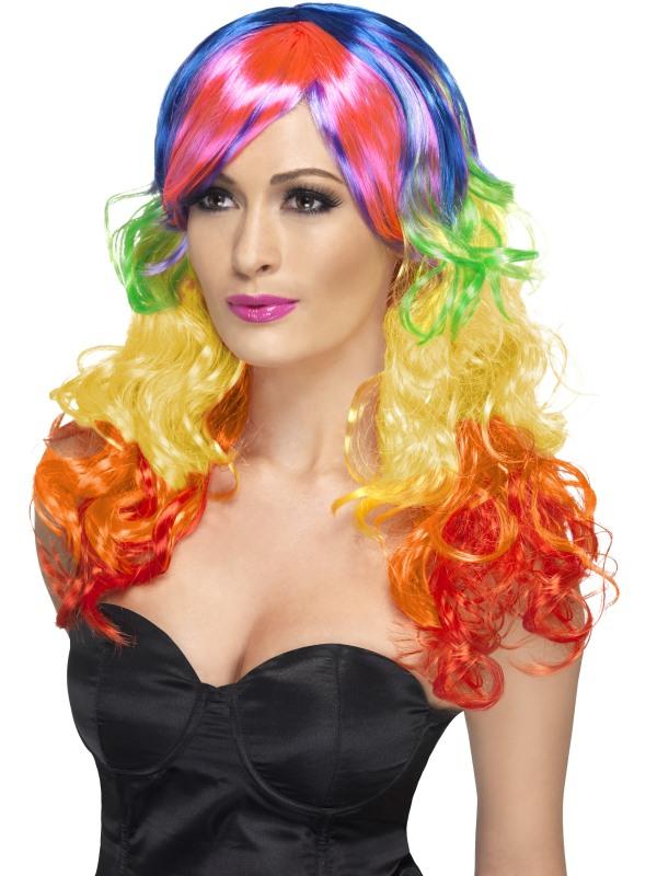 Rainbow Curl Wig, Multi-Coloured, Long, with Fringe, in Display Box
