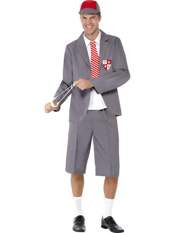 Schoolboy Costume, Grey, Blazer, Shirt Front & Tie, Shorts & Cap, in Display Bag