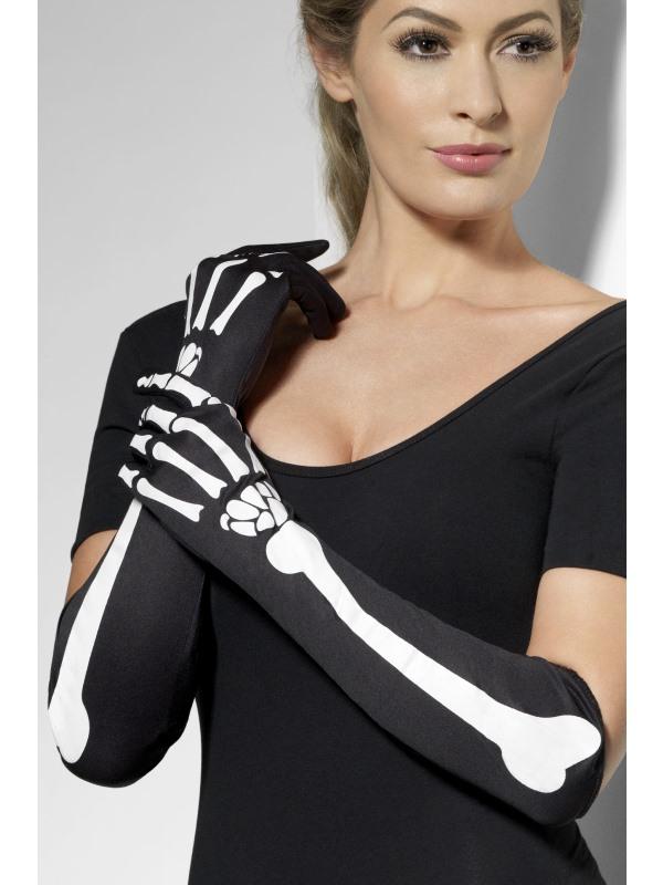 Skeleton Gloves, Black, Long, in Display Pack