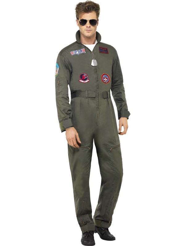 Top Gun Deluxe Male Costume, Green, with Jumpsuit, Dog Tags & Sunglasses, in Display Bag