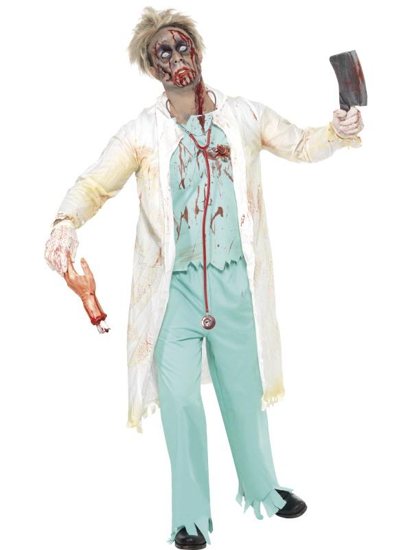 Zombie Doctor Costume, Green, with Jacket, Attached Top, Trousers & Gloves, in Display Bag